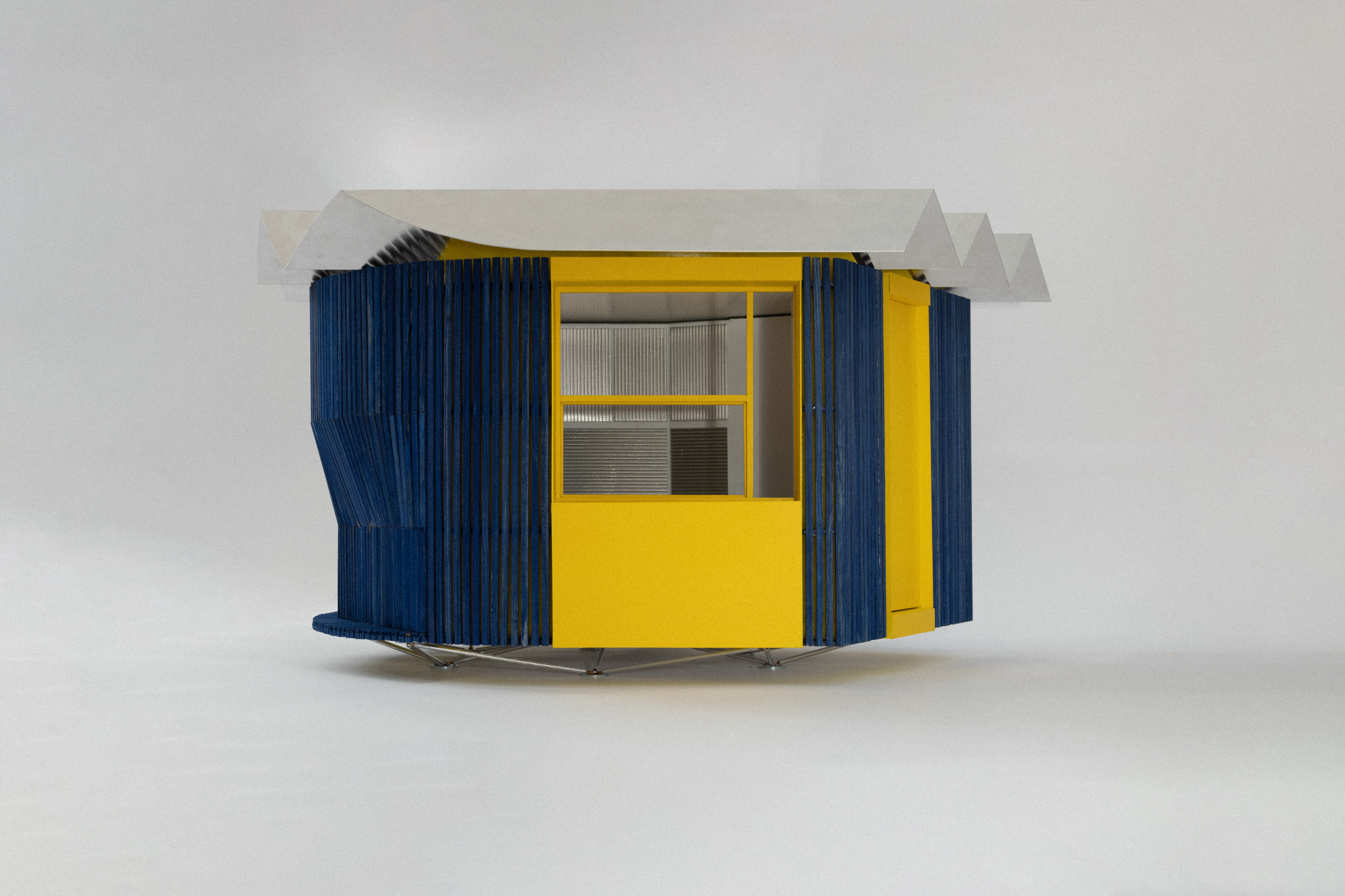 Der Kiosk sieht sich in der Tradition Aufenthalt und Konversation, ein Verweilen, überall in Karlsruhe und insbesondere am Bernhardusplatz zu ermöglichen. Die Reproduzierbarkeit und Loslösung vom vorbestimmten Kontext ist Grundvorraussetzung für die Möglichkeit der vielen Orte. Ist der Kontext nicht Bezugspunkt für einen architektonischen Ausdruck muss die innere Logik Ausgangspunkt des Entwerfens werden. Es rücken Aspekte wie die markante Dachform und die farbliche Codierung in den Vordergrund und bilden aus sich heraus einen neuen lokalen Kontext.