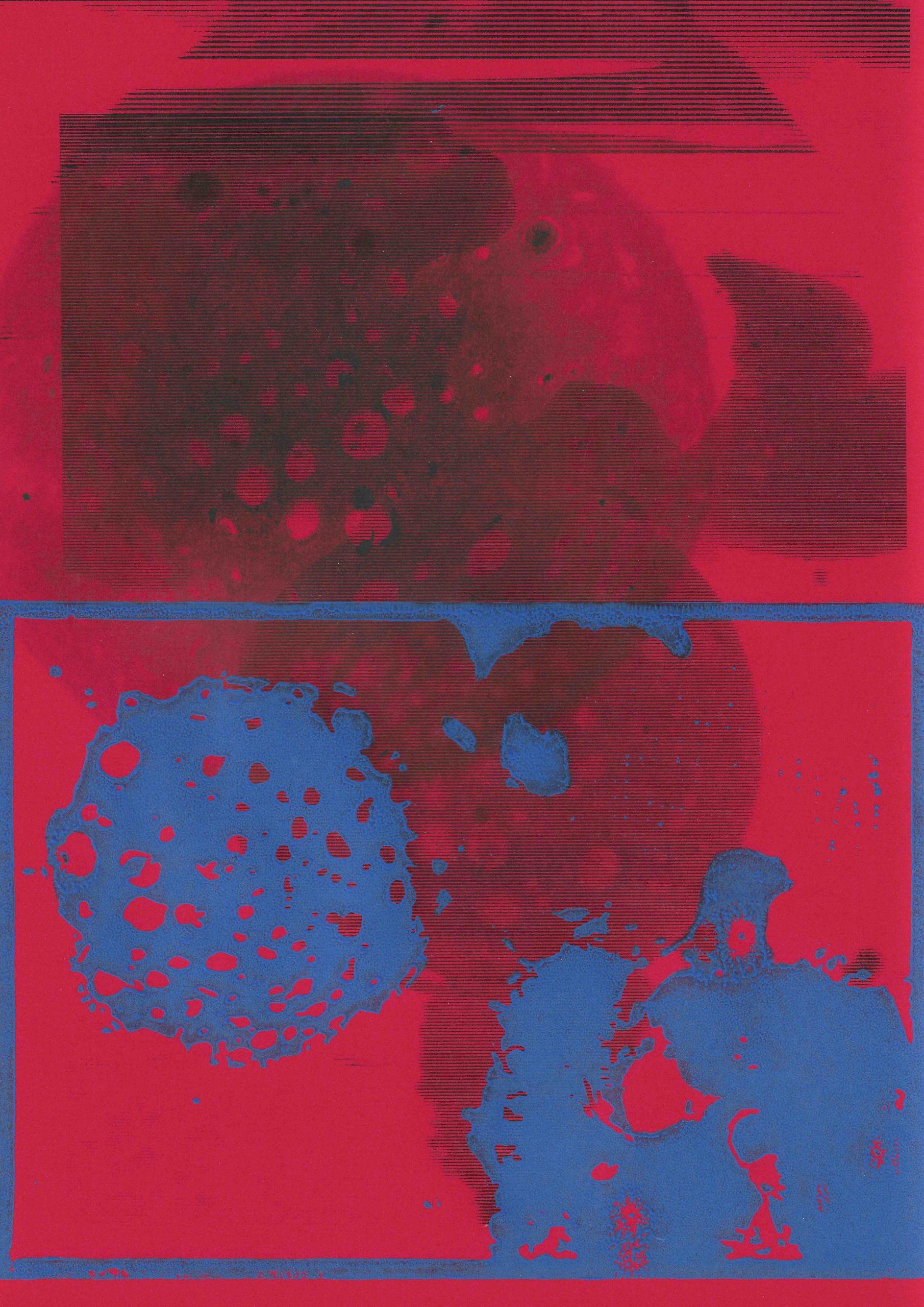Aufnahmen mit dem Raster Elektronenmikroskop lassen eine Welt entstehen jenseits der „mensch gemachten“ euklidischen Geometrien. Die Zunächst als formale Untersuchung des andersartigen zu verstehenden Blätter bedienen sich des standardisierten DIN Formats als Inbegriff der Normierungswut des Menschen und stellen einen bewussten Kontrast zu einer Welt im Kleinen dar, welche unabhängig unserer makroskopischen Ideale Funktioniert. Wir bewegen uns an der Grenze zu Quantenmechanischen Phänomenen, welche letztlich die Auflösung von Zeitlichkeit und Räumlichkeit postulieren. Die Welt im Allerkleinsten stellt unsere Welt im Großen in Frage.